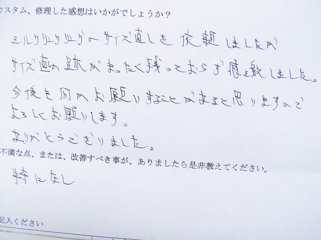 福井県Sさまの感想