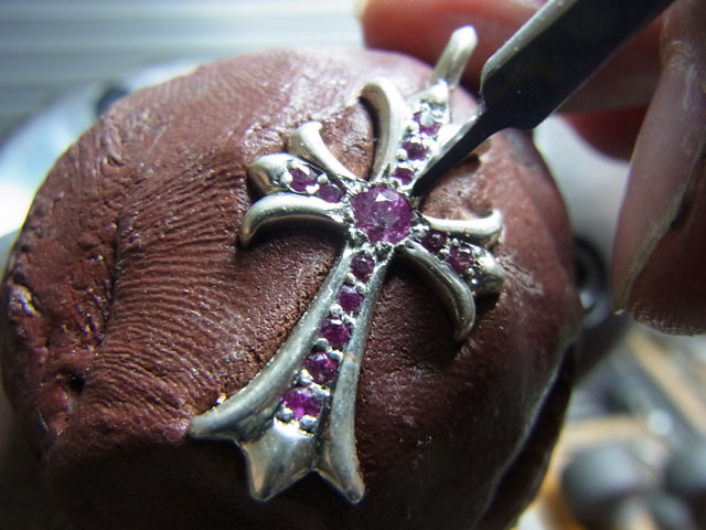 彫刻台にセットして毛彫りタガネで爪を彫り起こします。