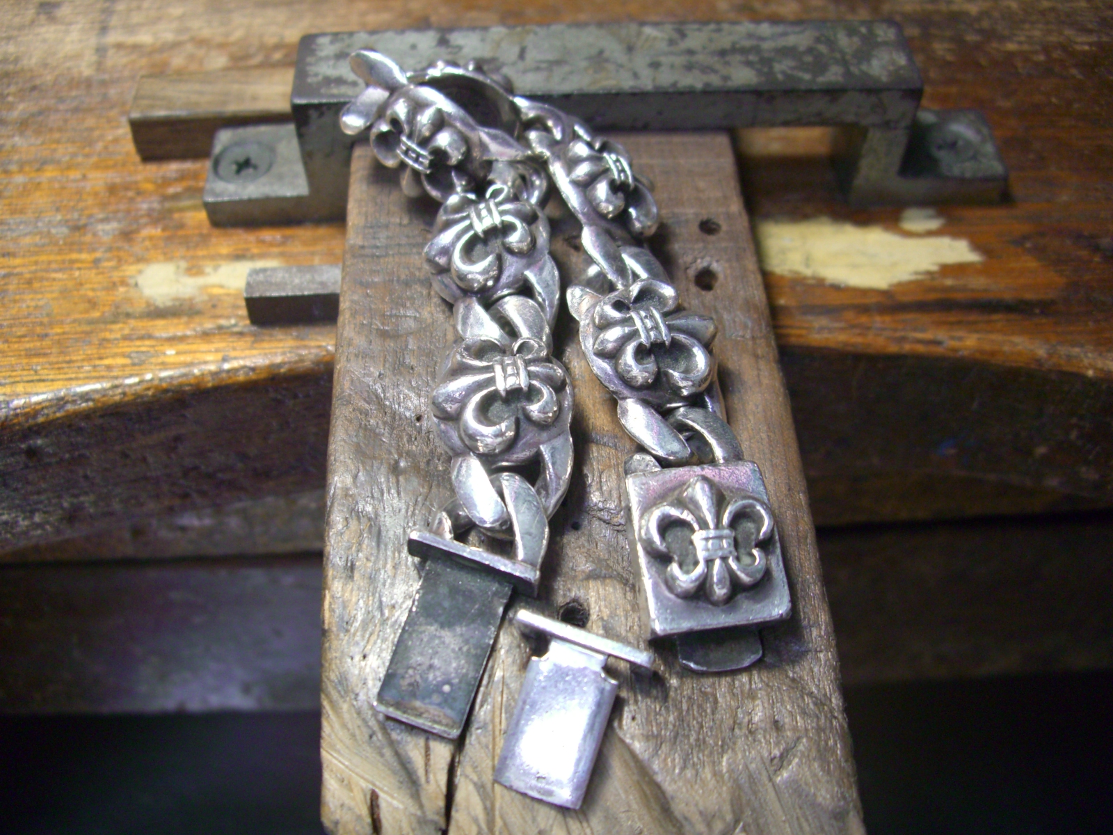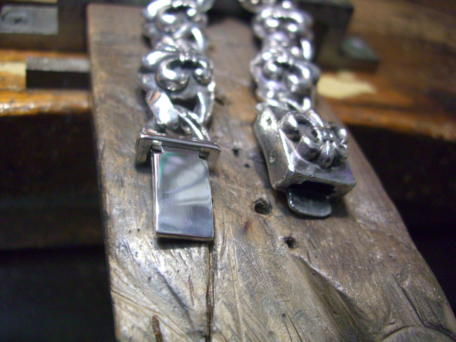 クロムハーツBSフレアブレスレット金具修理 更新日:2018年6月12日 公開日:2016年5月16日 クロムハーツ ブレスレット Tweet Check Chrome Hearts ブレスレットの金具を修理しました。 修復前、金具の部分が外れてしまいました。 ↓ 薄くなっているので、シルバーで作り直します。 ↓ ばっちり修復できました。 ↓ 修理後のクロムハーツブレスレット 修理代金は、税別2万円、納期は3週間でした。 クロムハーツブレスレット修理 クロムカスタム工房株式会社 代表 石津 雅之(info@kuromu.com) ◆一級貴金属装身具製作技能士◆ ◆GIA GG(米国宝石学会宝石鑑定士)◆ 546-0041 大阪府大阪市東住吉区桑津5丁目14-1 (TEL) 0120-958-966 クロムハーツのブログ クロムハーツ修理ブログ メールマガジン、バックナンバー http://goo.gl/sthVxi メールマガジンの登録、解除 https://www.kuromu.com/blog/archives/7098 Related posts: クロムハーツ WBリングブレス 1コマ延長 クロムハーツ ファンシーチェーン クリップブレスレットの金具修理 クロムハーツ ファンシーチェーン クリップブレスレットのパーツを取り付けました。 クロムハーツ フレアニーウォッチブレス 金具製作&修理 タグ BSフレア CHROME HEARTS chromehearts クロムハーツ リペア 修理 関連記事 クロムハーツタイニーEプラスブレスレットの金具修理クロムハーツ クロスブレスレットの改造R&R レザーブレスレットの改造クロムハーツ、フローラルIDブレスレットのチェーン製作&取付クロムハーツ ファンシーチェーン クリップブレスレットの金具修理クロムハーツ キーチェーンのクリップ修理 投稿ナビゲーション IDブレスレット、イブシ除去、ロジウムコーティングクロムハーツタイニーEプラスブレスレットの金具修理